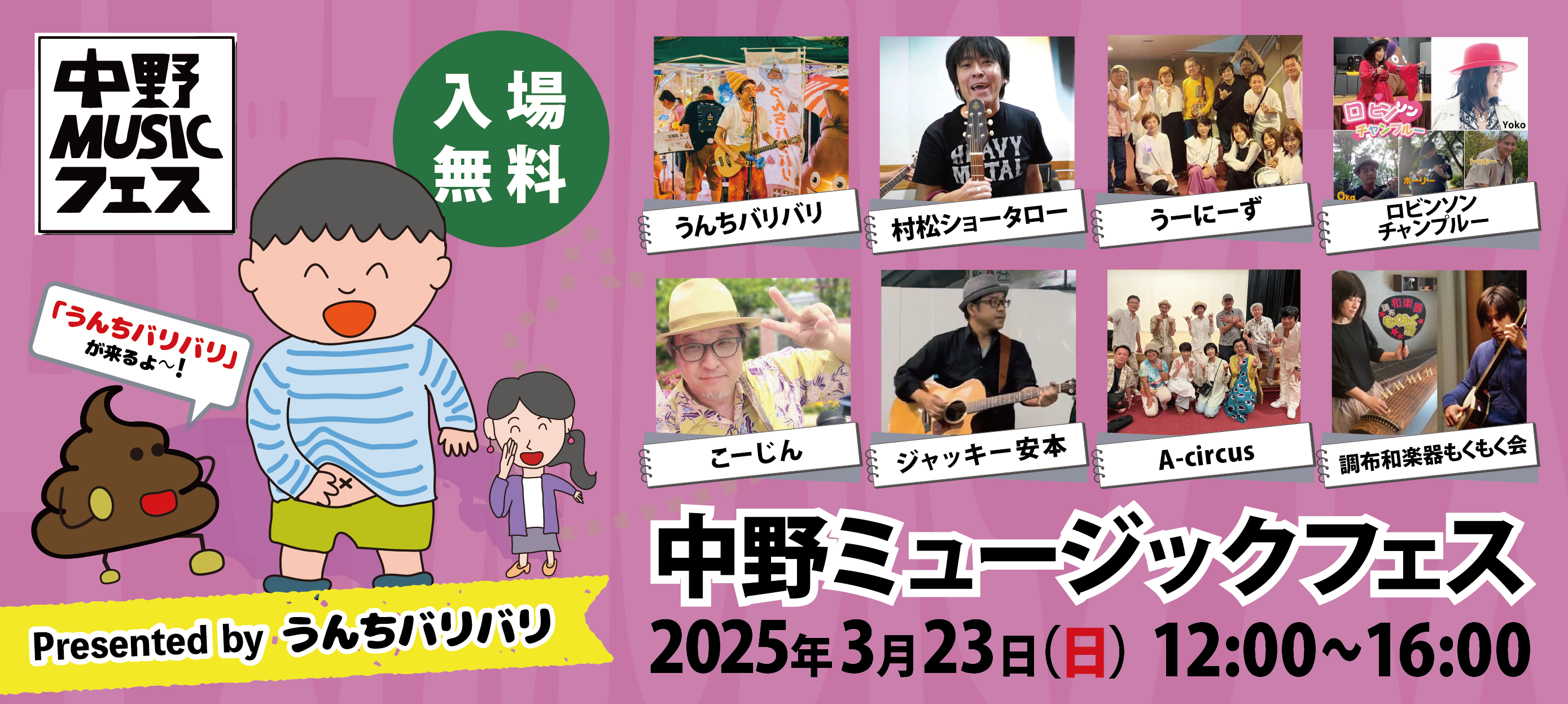 うんちバリバリプレゼンツ「中野ミュージックフェス 20250323」は終了しました。